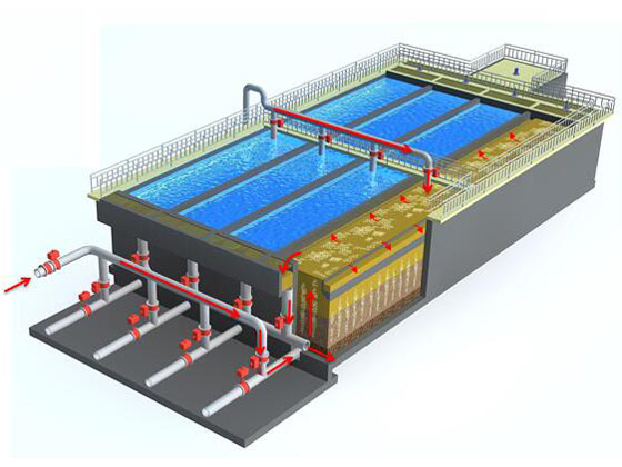 反洗風(fēng)機(jī):由羅茨鼓風(fēng)機(jī)按設(shè)定的風(fēng)量,通過(guò)整個(gè)濾池底盤(pán)輸入反沖洗空氣。