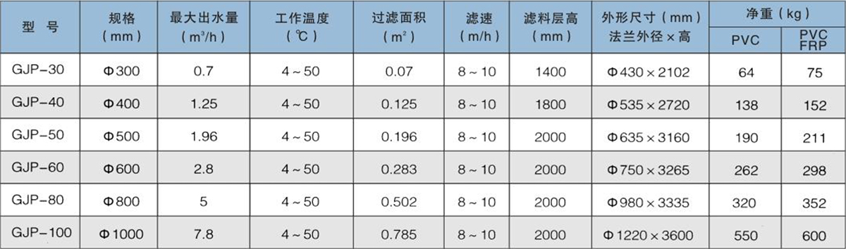 硬聚氯乙烯活性碳過濾器規格型號及技術參數